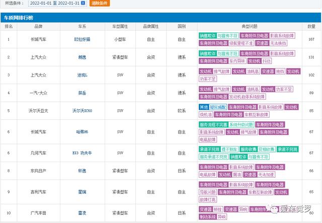 随着汽车产销量的激增,与产品品质、厂商服务、处事态度相关的投诉问题也再同步上涨。过去一年,沃尔沃XC60疑似减配、大众途岳颗粒捕捉器堵塞、欧拉好猫偷换芯片等事件在业内引起了广泛影响。根据汽车投诉网统计数据...