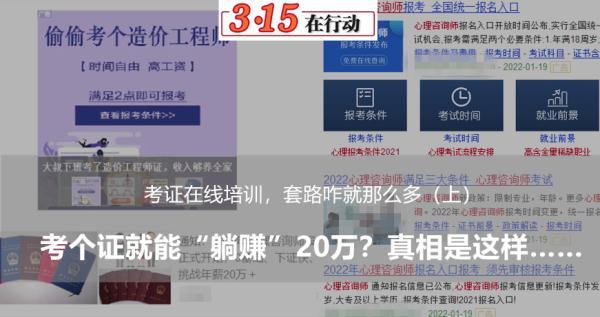 考证包过?轻松挂靠?没考过能退费?听到这些“承诺”要考证的小伙伴们赶紧跑近期,多名消费者向《中国消费者报》反映,称自己轻信考证培训机构的这些承诺,结果“竹篮打水一场空”。