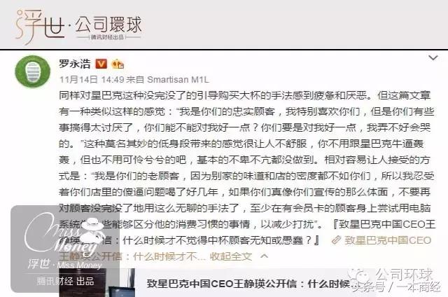 最近一篇题为《致星巴克中国CEO王静瑛公开信:什么时候才不觉得中杯顾客无知或愚蠢?》引来了众多微博大V的讨论和数百万网友的吐槽。