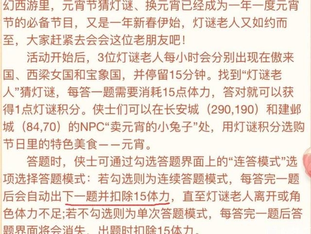 梦幻西游:元宵答题的收益有多少?不要有太多期待这几天大家都应该一边盯着假期综合症上班,一边开始狂肝挂机答题。答题要消耗体力,本期就计算一下,体力兑换元宵的问题。首先如何获得更多的体力,就是那几种大家都知道...
