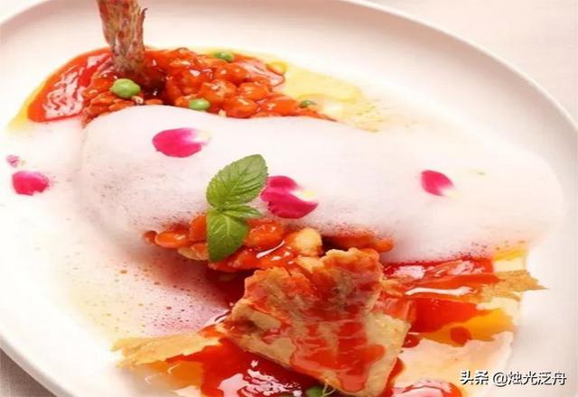 泡沫松鼠鱼此菜在松鼠鱼传统做法的基础上进行了两点改良:首先,用番茄沙司、柠檬汁调成酸甜味的浇汁,以热油激“活”,使颜色更亮、香味更浓;其次,鱼身上还要盖一层“柠檬泡沫”,将分子料理与中餐完美结合...
