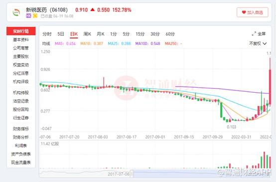 俗话说“熊市多暴涨,牛市多暴跌”,在熊市阶段,暴涨的往往是所谓的“妖股”。现如今的港股市场,已然是熊市行情,股价腰斩,破位的比比皆是。尽管整体行情十分不好,但依然有少数个股走出波澜壮阔的行情,新锐医药(0...