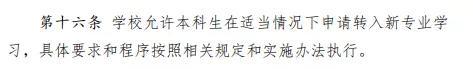 1,北京大学第二十一条 学生可以申请转院系转专业,但有下列情况的除外:(一)教育部有相关规定或者录取前与学校有明确约定不得转专业的;(二)依据定向、委托培养协议或规定不能转专业的;(三)本科三年级(含)以...