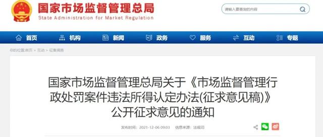 来源:国家市场监督管理总局网站编者按:近日,国家市场监督管理总局发布《市场监督管理行政处罚案件违法所得认定办法(征求意见稿)》(以下简称“《违法所得认定办法...